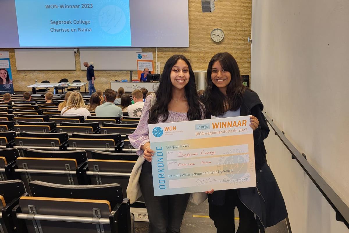 Charissa en Naina uit 4V kregen de 1e prijs voor hun onderzoek! De andere twee groepjes