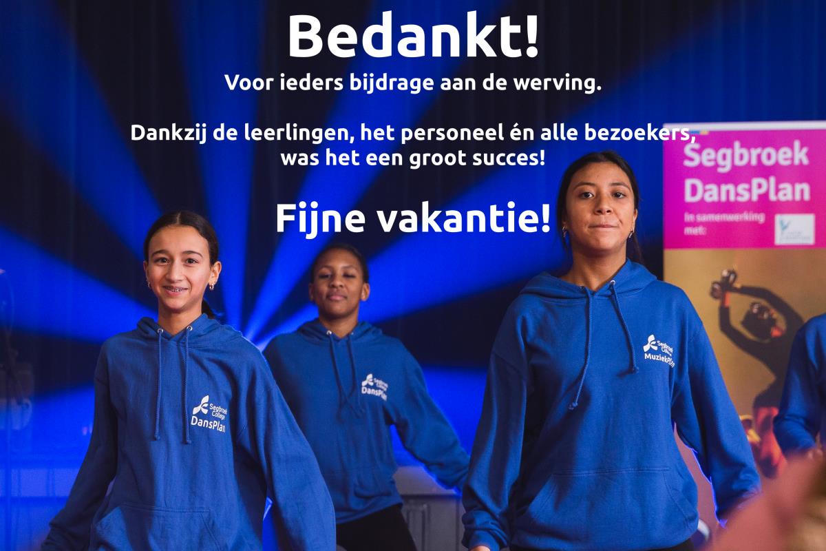 Met dit bericht willen we al het personeel en alle leerlingen bedanken voor hun bijdrage aan de werving. En natuurlijk danken we alle bezoekers van de online voorlichtingsavond, de open dagen en de rondleidingen. Het was een groot succes! Fijne vakantie!! #segbroekcollege