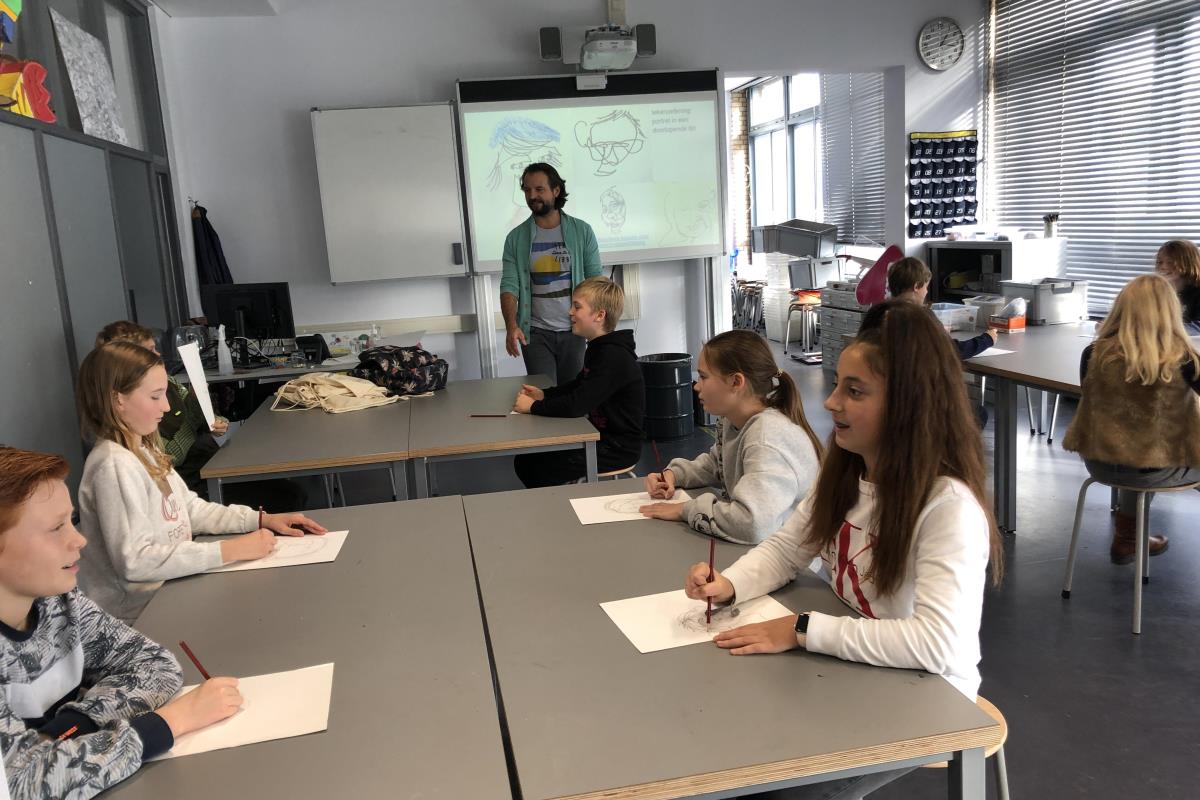 Dinsdag 3 en donderdag 5 november bracht een behoorlijk aantal groep achters van verschillende basisscholen een bezoek aan het Segbroek College voor de BOVO-lessen. Na een algemeen welkom werden de verschillende groepen meegenomen door talloze docenten die een korte les gaven over hun vak. Bij het vak tekenen (zie foto) werd er ‘blind’ geportretteerd. Dit hield in dat de leerlingen elkaar probeerden na te tekenen zonder dat ze naar hun tekenpapier keken. Per groep werden 3 verschillende lessen van 30 minuten gevolgd en verlieten halverwege de middag veel enthousiaste groep achters het Segbroek College.
