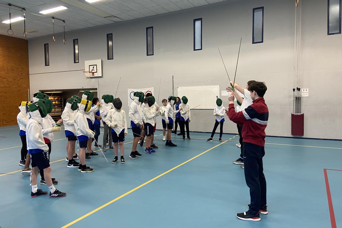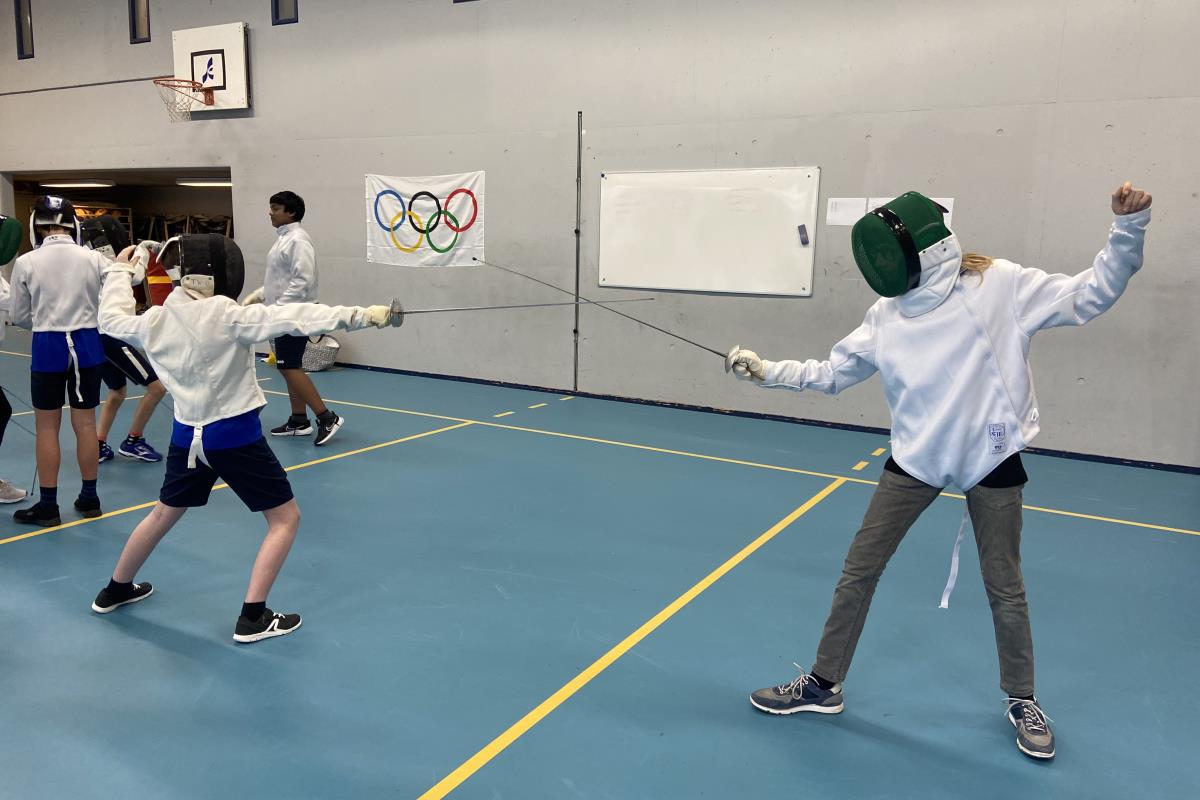 Deze bijzondere dag is speciaal georganiseerd voor de gymnasiumleerlingen. De leerlingen werden verdeeld in teams van 4 à 5 personen, waarna om 09.00 uur het Olympisch vuur in de gymzaal door meneer Van Adrichem werd ontstoken. De leerlingen namen een dagdeel deel aan de klassieke pentathlon (hardlopen, verspringen uit stand met gewichtjes, speerwerpen, kogelstoten in plaats van discuswerpen en worstelen), waarin bij elk onderdeel de verschillende teams tegen elkaar hebben gestreden. In het andere dagdeel hebben zij onder leiding van de schermleraar en onze topsporttalentleerling Cedric van den Berg (4 vwo) de beginselen van het schermen in echte schermpakken aangeleerd gekregen. Ze maakten daarbij gebruik van elektronische meldapparatuur die de punten registreerde.