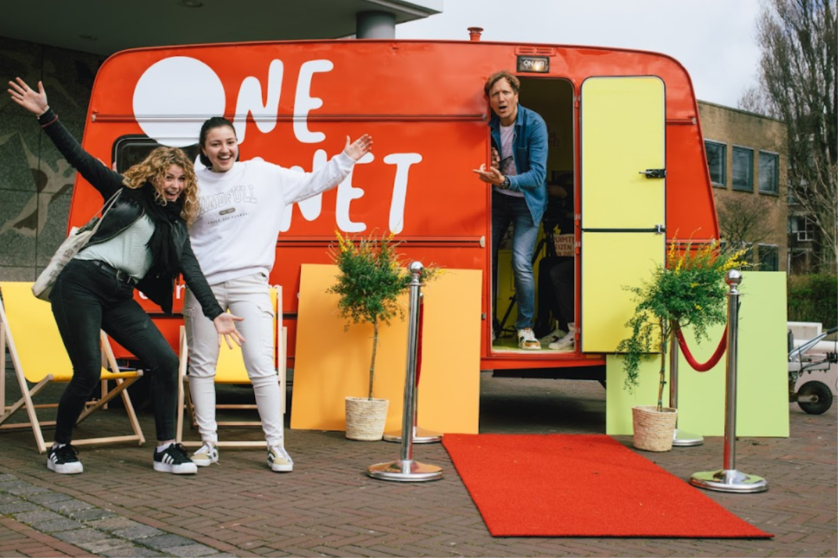 Zoals wel vaker vroeg de organisatie het Segbroek College, bekend van de leuke leerlingen, om een bijdrage. En zo kwam het dat donderdag 17 maart jl. deze oranje caravan op ons schoolplein kwam te staan. Hier hebben leerlingen van 5 en 6VWO in de caravan met BN-ér Klaas van Kruistum hun zorgen over de toekomst gedeeld en hun prangende duurzaamheidsvragen voor de camera bij hem achtergelaten. Wellicht binnenkort te bewonderen in de permanente tentoonstelling van One Planet.