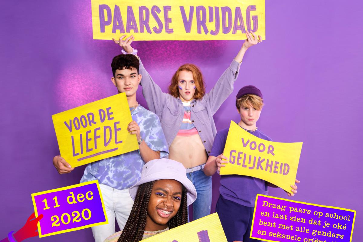 Het thema van Paarse Vrijdag is dit jaar: STA OP! voor gelijkheid, respect, rechtvaardigheid, inclusiviteit, voor de liefde, voor wat je voelt en voor iedereen! Draag op 11 december paars naar school om te laten zien dat jij oké bent met alle genders, sekse en seksualiteiten.