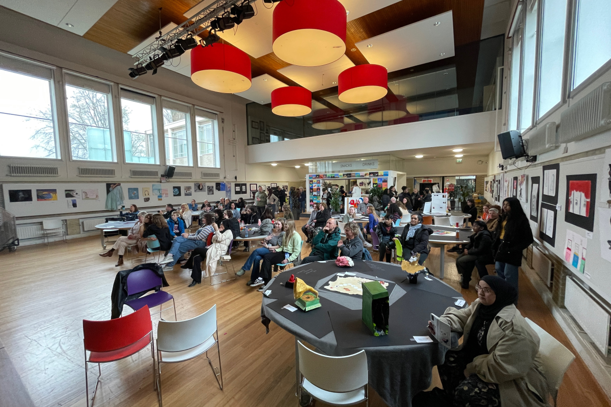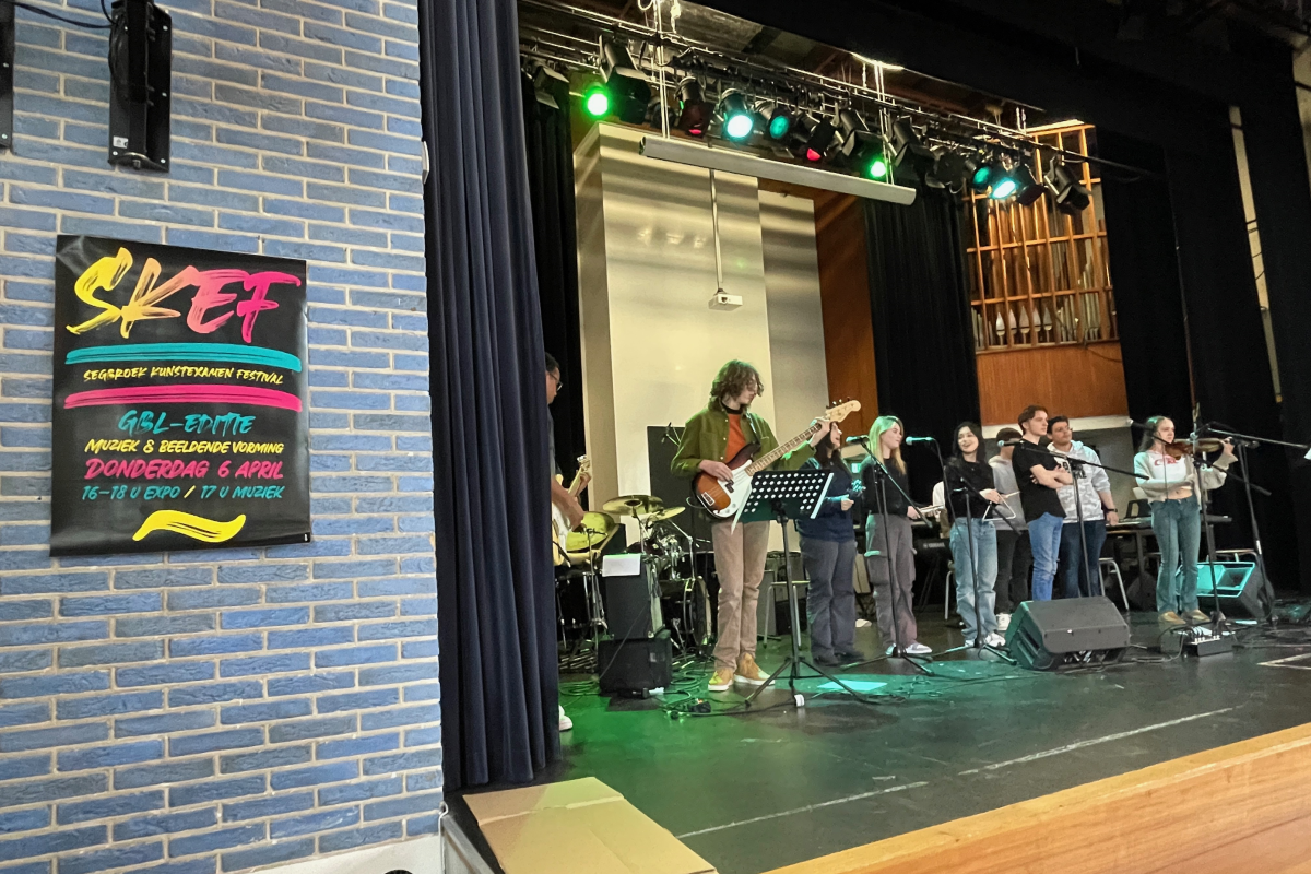 Op donderdag 6 april was de allereerste editie van SKEF op de locatie Goudsbloemlaan. Leerlingen Muziek en Beeldende Vorming uit 4M deden hun praktijkexamen. De zaal was gezellig vol. Ouders, familie en vrienden genoten van de muziek en de prachtige kunstwerken. Volgend jaar weer!